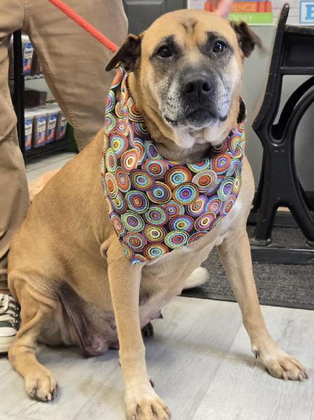 Notes: Koda, Mastiff Mix, around 7 years old, spayed Female, Large. Vaccinations up to date.