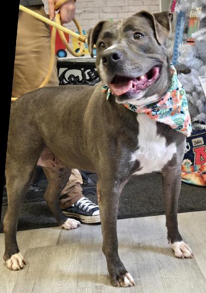 Cleo, Pit mix, 5-6 years old, Female, Large. Vaccinations up to date, spayed. NO OTHER ANIMALS!This dog has been available for 157 days